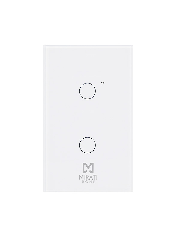 APAGADOR INTELIGENTE DE PARED MIRATI DE 2 APAGADORES TOUCH WIFI 2.4HZ BLUETOOTH // COMPATIBLE CON ANDROID E IOS // FUNCIONA CON ALEXA Y ASISTENTE DE GOOGLE