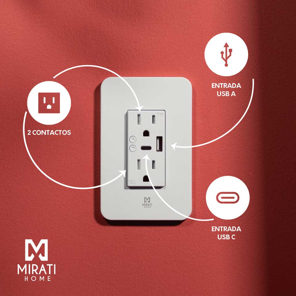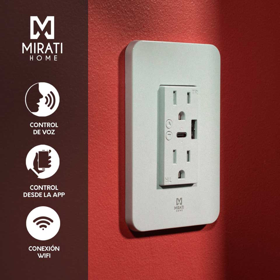 Contacto Inteligente Mirati 2 Contactos 1 USB-A 1 USB-C Compatible con Asistente de Google y Alexa Modelo MCP2