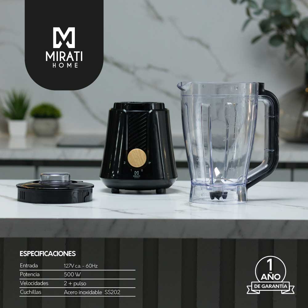 LICUADORA MIRATI / 500 W / 1.2 L / 3 VELOCIDADES / CUCHILLAS DE ACERO INOXIDABLE / NEGRO